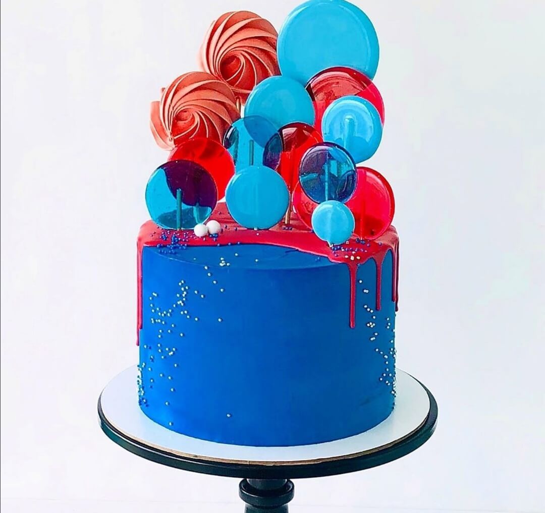 Аппетитный тортик с декором в виде пузырьков может быть украшен по вашему желанию дополнительными картинками, надписями или фигурками