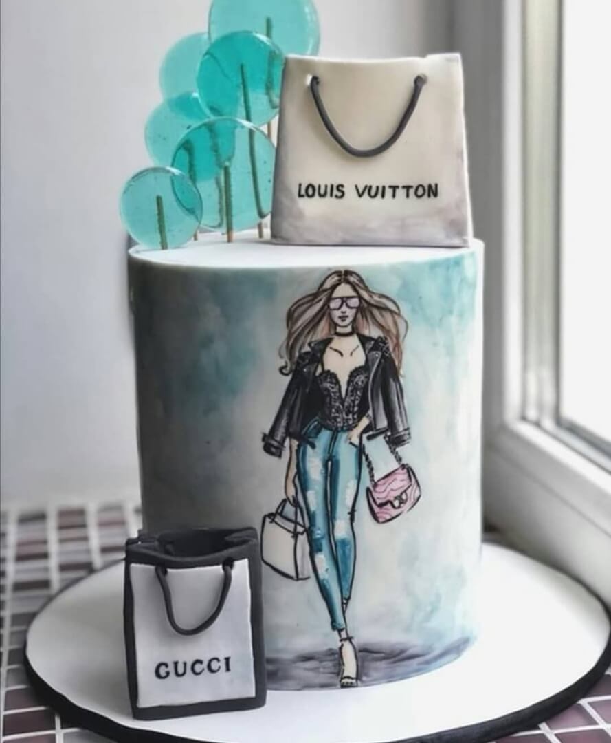 Минималистичный, но стильный торт для заядлой любительницы шопинга и брендовых вещей