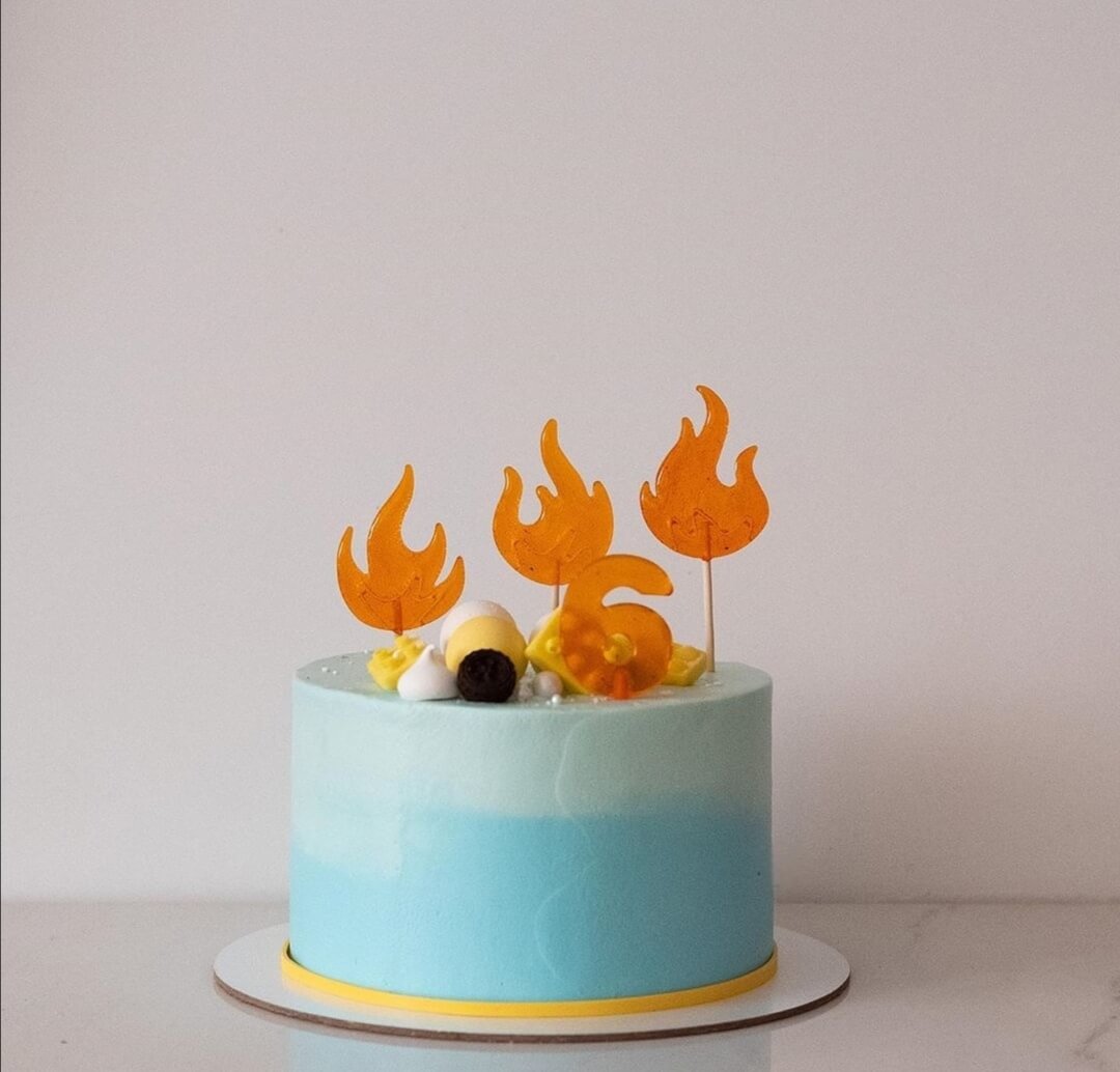 Огненно-вкусный тортик можно легко украсить не только яркими языками пламени, но и всем, чем пожелает ваша душа"