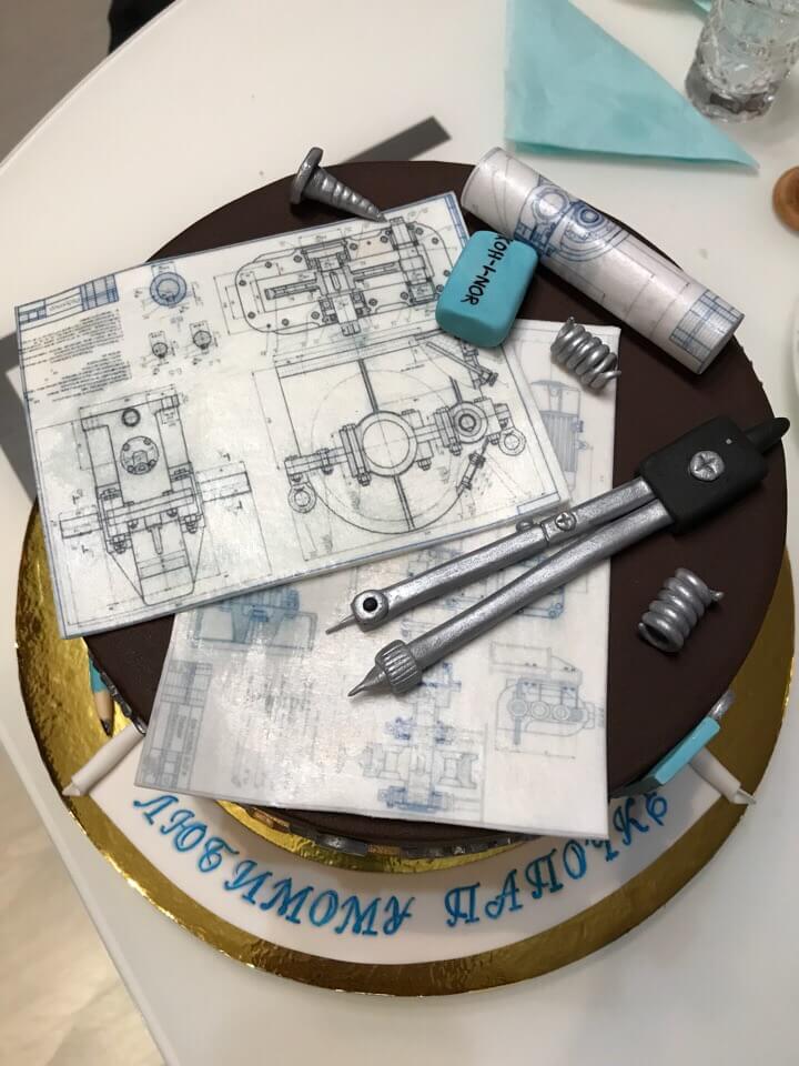 Если ващ папа - инженер, то и подарок должен быть соответствующим! К вашим услугам наш чудесный тортик в духе черчения, точности и полной серьезности!